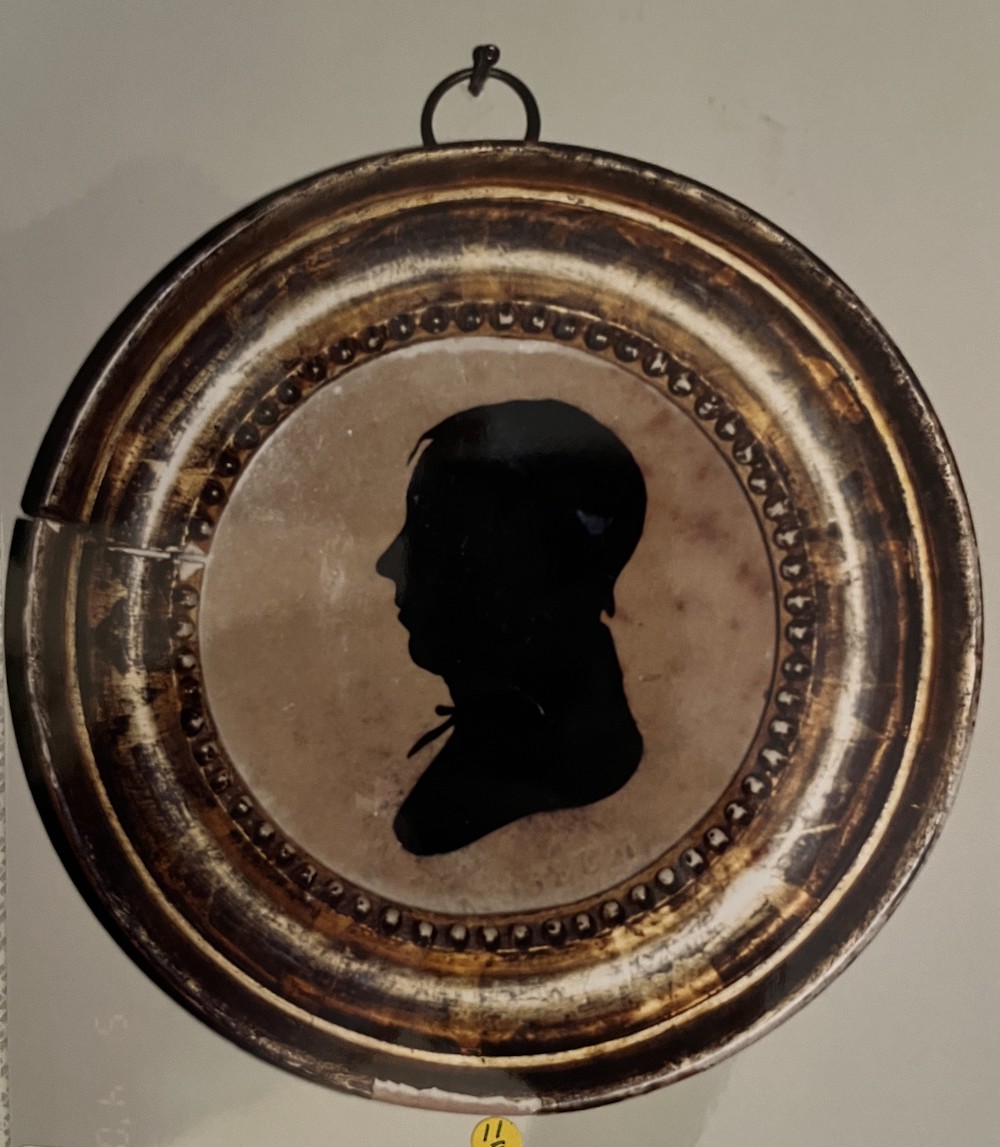 Silhouette of William Thorne (1798-1843) Thorneton Farm, Colestown, NJ; in gilded 5.125 circular wood frame. Embossed with the Peale Museum seal.